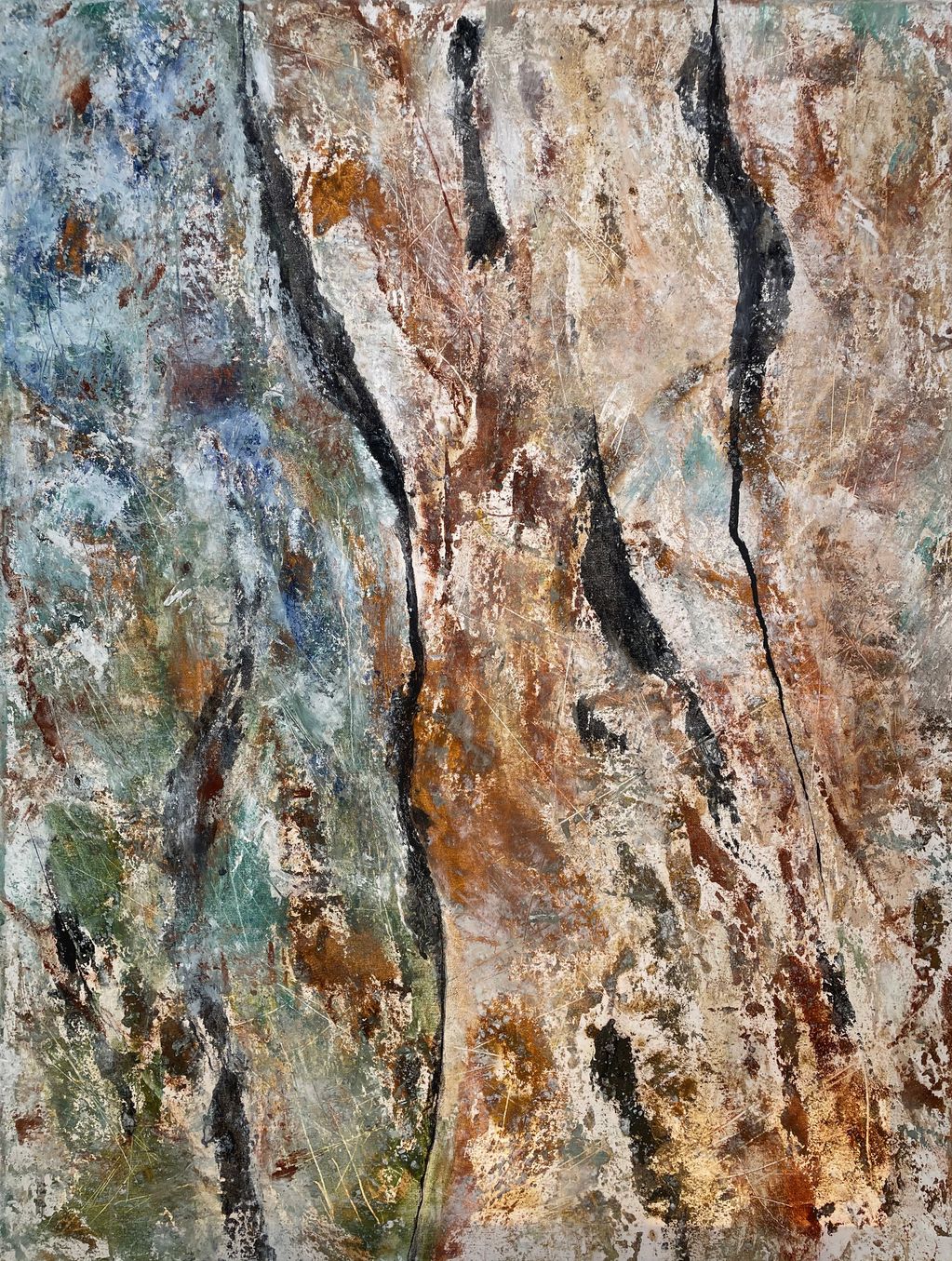 Earth Pigments mixed with walnut oil, organic cotton canvas, plant-based gesso, highly textured