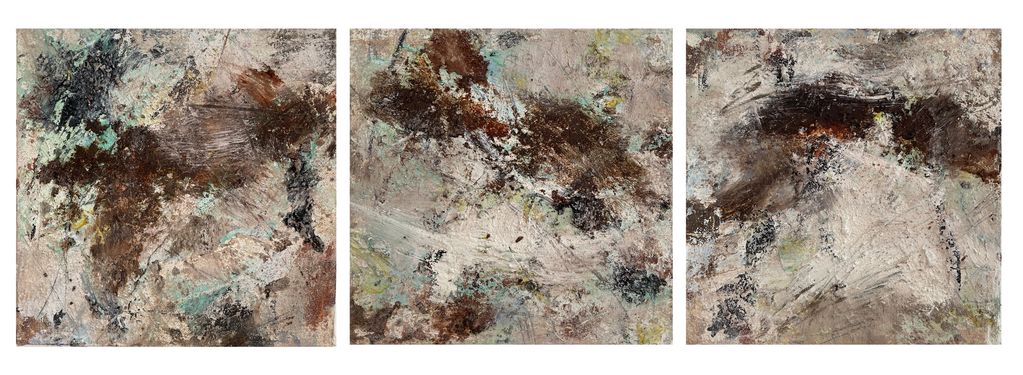 Triptych 8” x 24” 2023Natural earth pigment and walnut oil, organic cotton canvas, plant-based gesso
