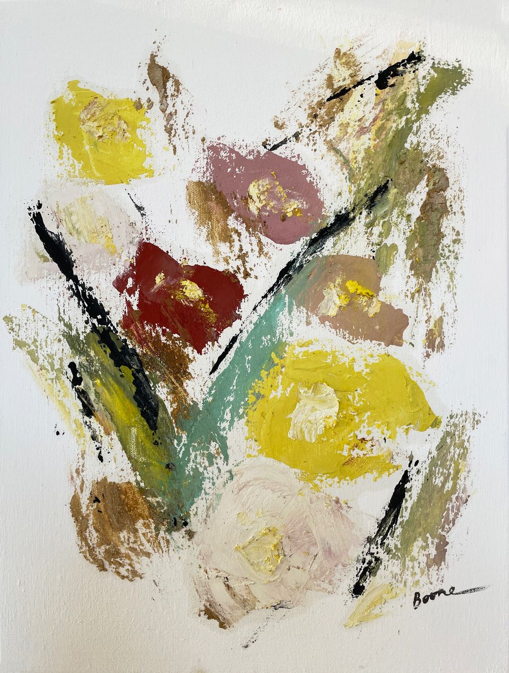 Earth pigments mixed with walnut oil, cotton canvas, plant-based gesso