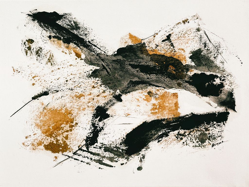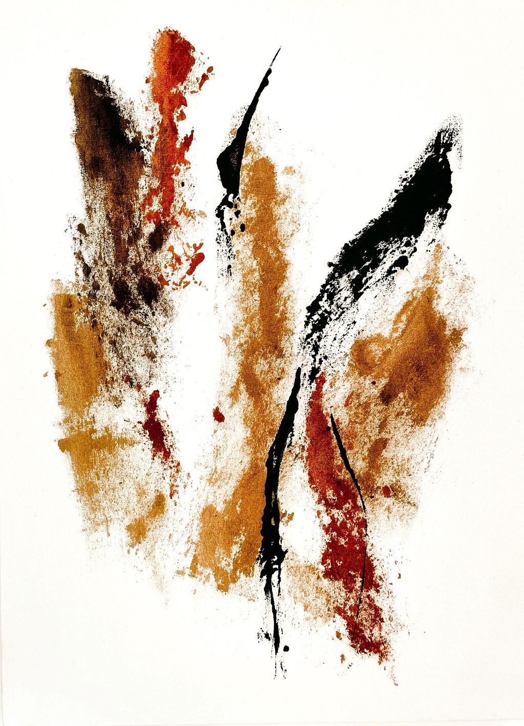 Oil painting - foraged earth pigments like local yellow ochre and charred wood, ground with a pestle mortar, mixed with walnut oil, on organic cotton canvas, plant-based gesso